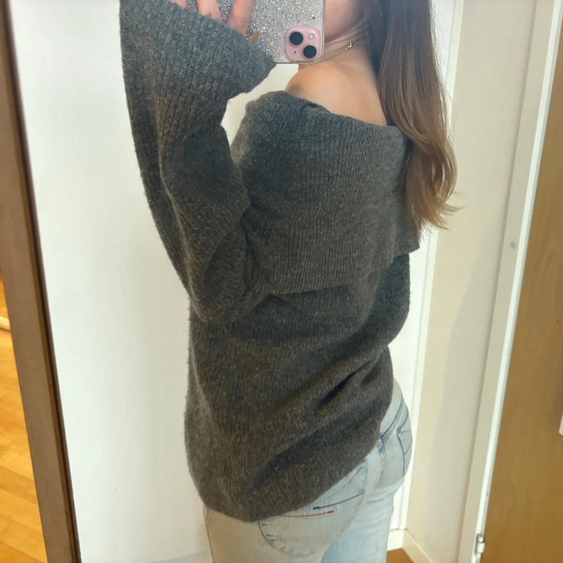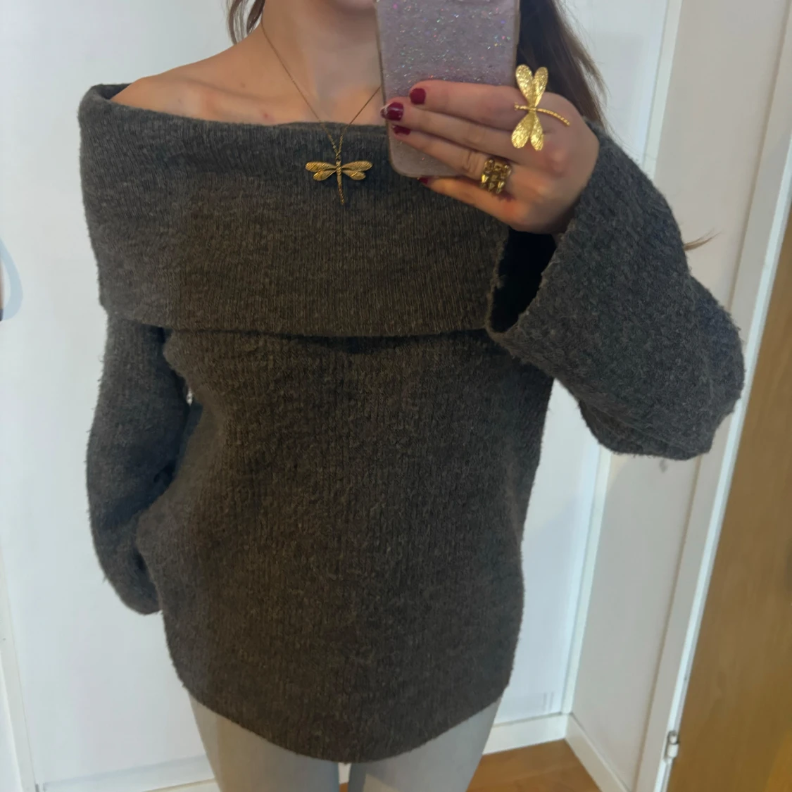 Såå fin off shoulder stickad tröja! jag är 168 och det är mina bilder, köp via köp nu direkt eller Swish, kvar tills markerad som såld ❤️