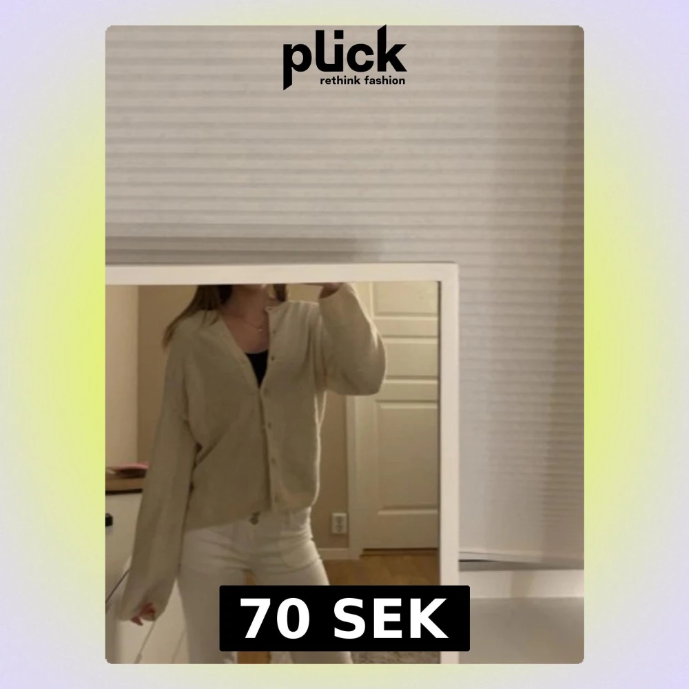 Mysig beige kofta från H&M i storlek XS. Koftan har en avslappnad passform, långa ärmar och knappar framtill. Perfekt att slänga över en topp för en enkel och clean look.