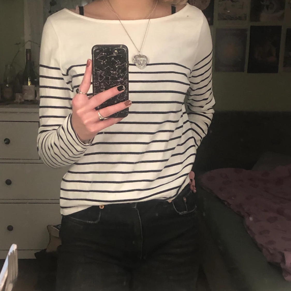 Svartvit randig tröja i gott skick, knappt använd. Storlek M men passade mig som är S