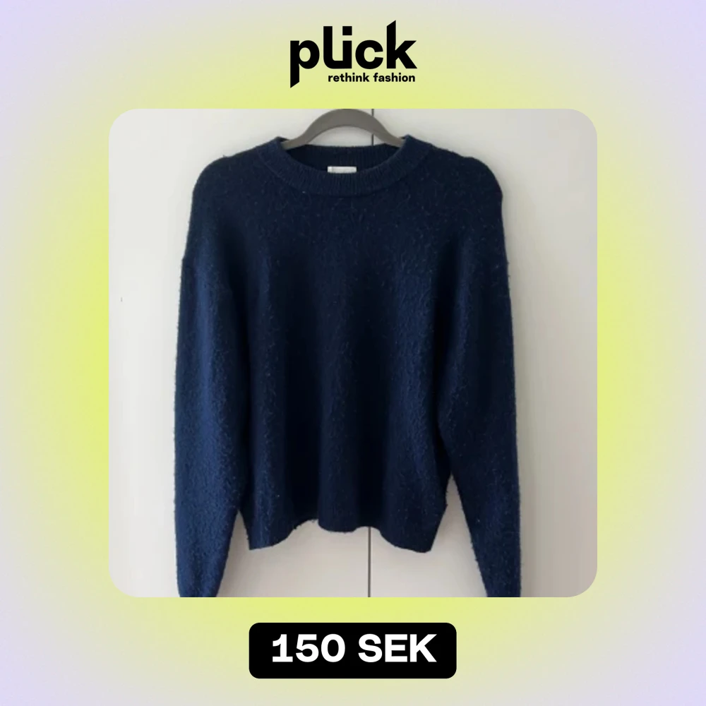 Stickad tröja från HM i marinblått utan hål och defekter. Lite nopprig men fortfarande i bra skick. Köparen står för frakten. Skriv vid frågor.