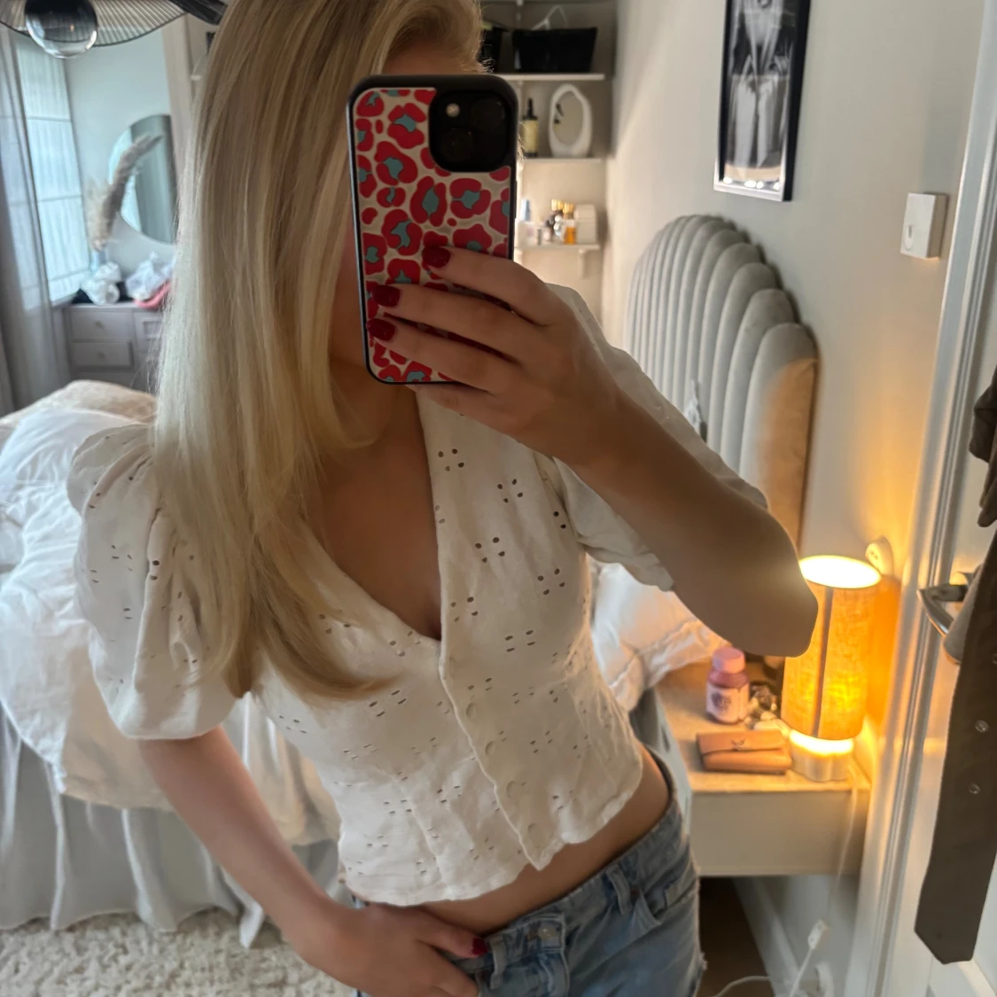 Super söt kortärmad kofta med knappar och volang ärmar. Går även att ha öppen. Inga defekter.