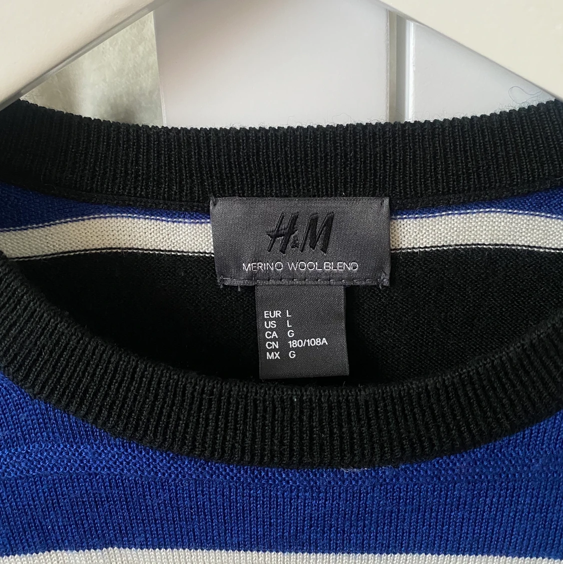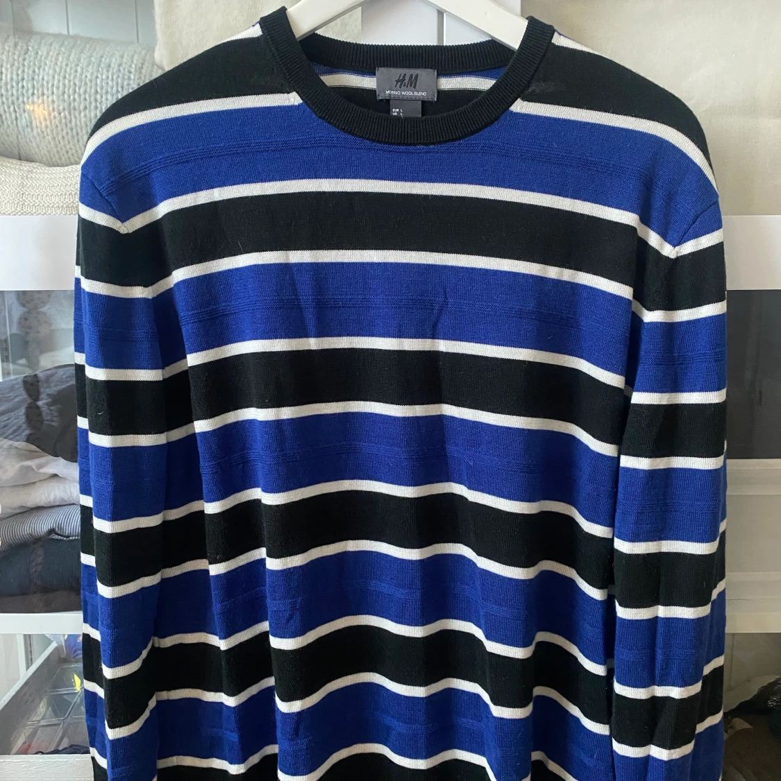 Randig wool blended tröja från hm. Storlek L men passar absolut mindre. Sjukt najs.