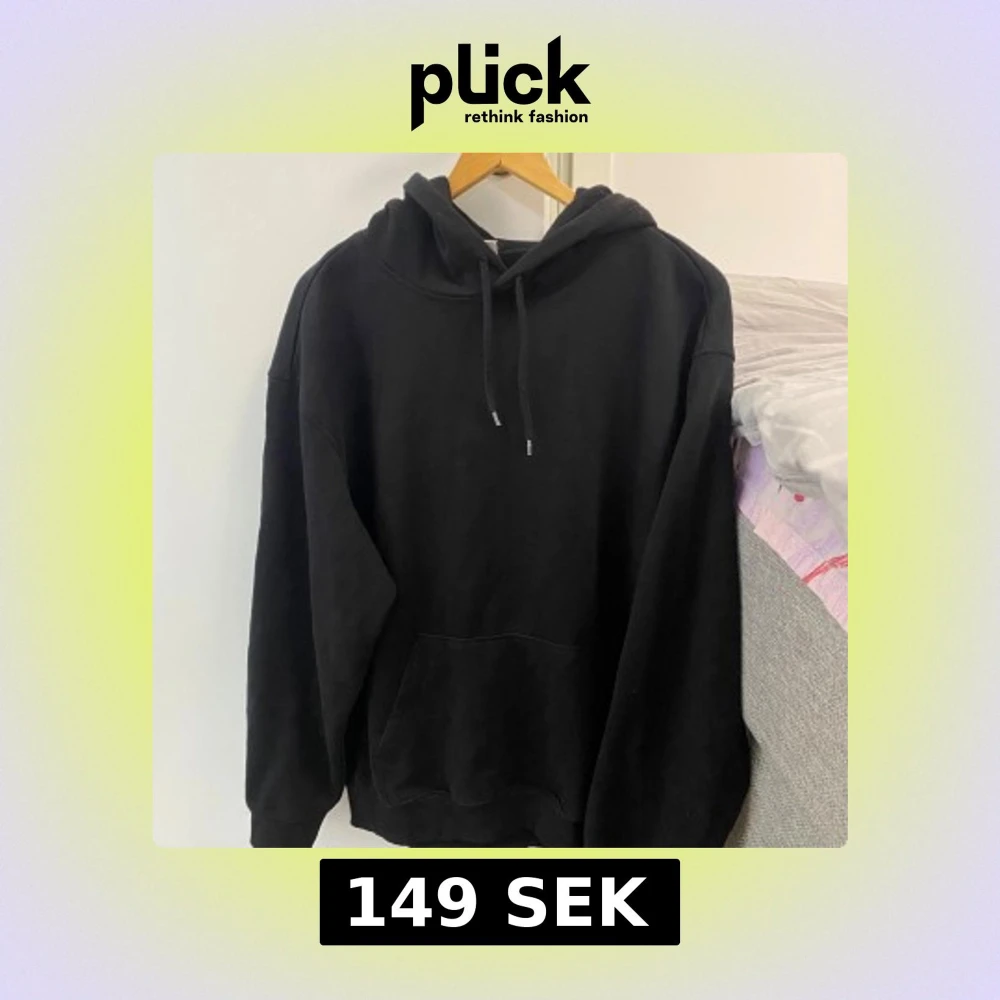 En klassisk oversized svart hoodie med huva och en stor magficka. Perfekt för en avslappnad stil och enkel att matcha med det mesta. Mjuk och bekväm, passar både till vardags och när du vill mysa hemma.