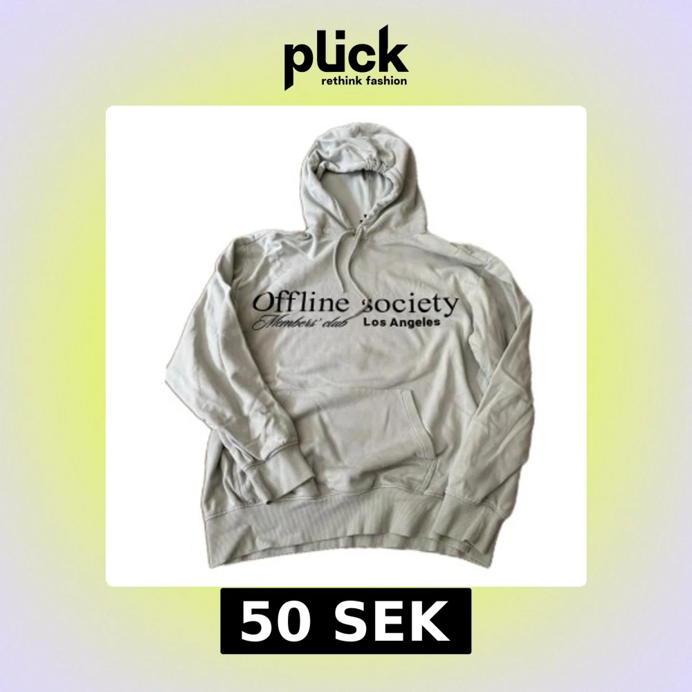 Ljusgrå hoodie från H&M med trycket 'Offline Society Members' club Los Angeles' på bröstet. Tröjan har huva med snörning, känguruficka och relaxed fit. Perfekt för en chill och avslappnad stil.