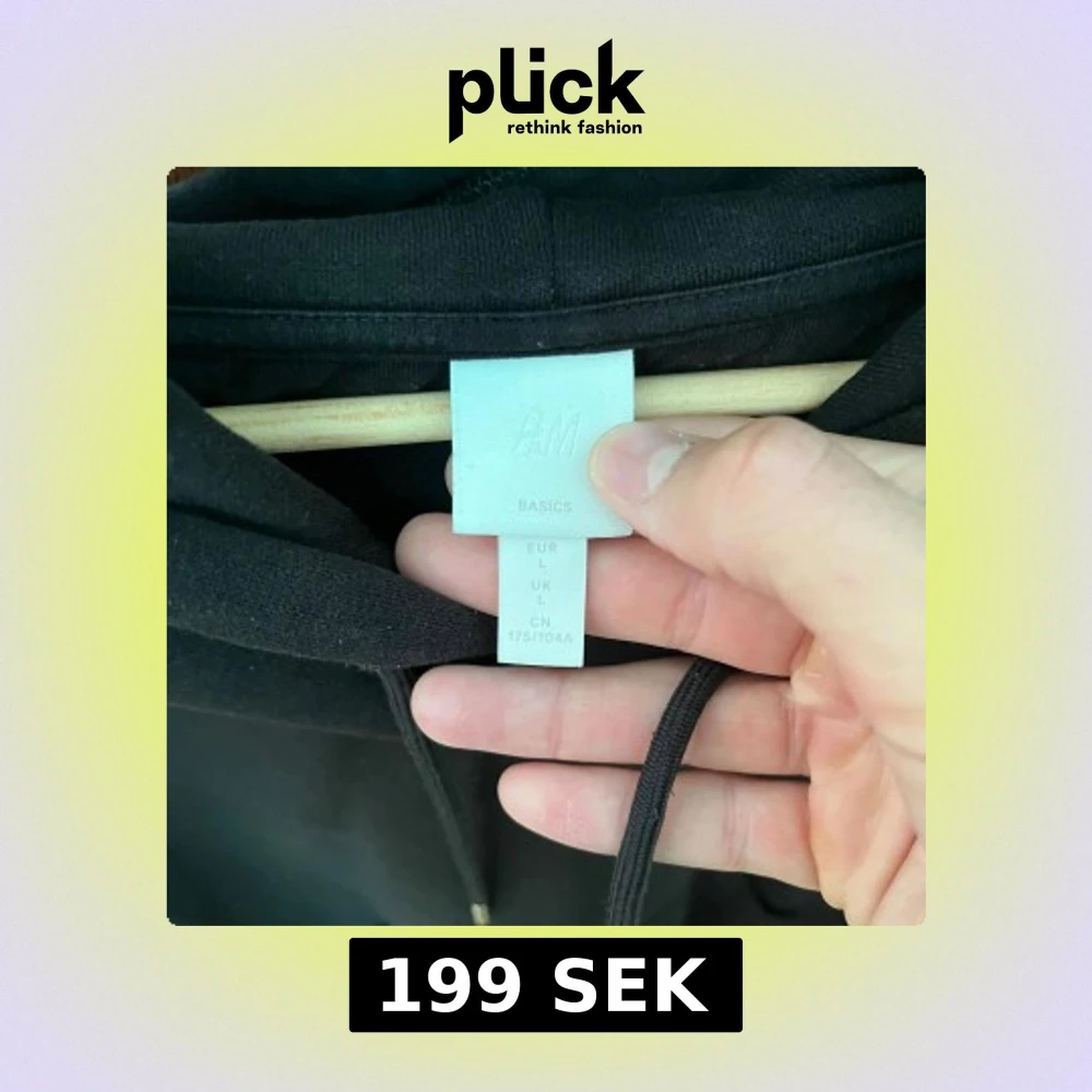 En klassisk svart hoodie från H&M Basics i storlek M. Tröjan har huva med snörning, magficka och ribbade muddar. Perfekt för chill dagar eller när du vill ha en enkel och stilren look.