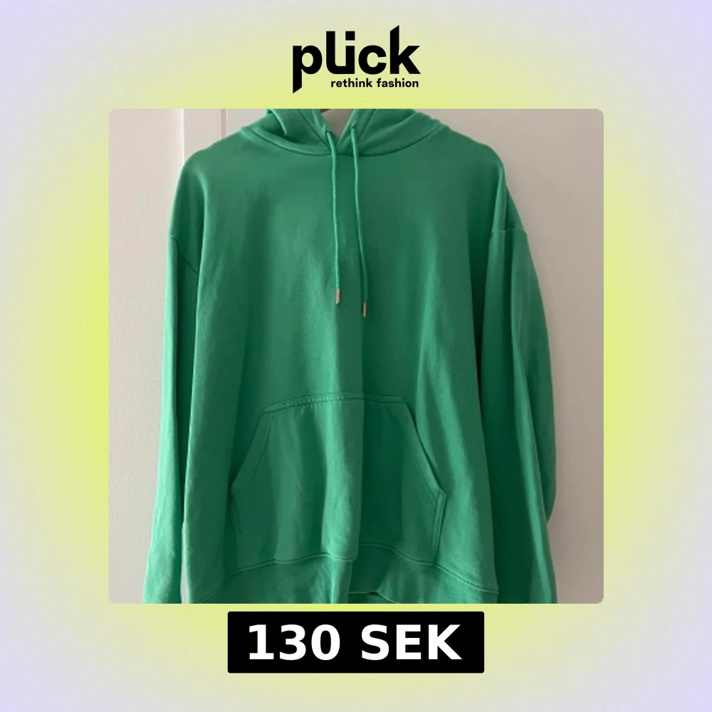 Snygg grön hoodie med huva och dragsko, perfekt för en chill look. Tröjan har en stor magficka och långa ärmar med ribbade muddar. Oversized passform som ger en avslappnad vibe.