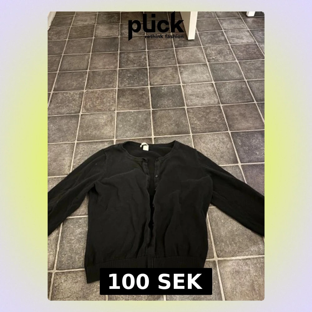 Svart kofta från H&M i storlek L sitter som S, Klassisk modell med rund hals, långa ärmar och knappar framtill. Tillverkad i mjuk bomull som är skön mot huden. Perfekt att slänga på sig när det är lite kyligt ute.