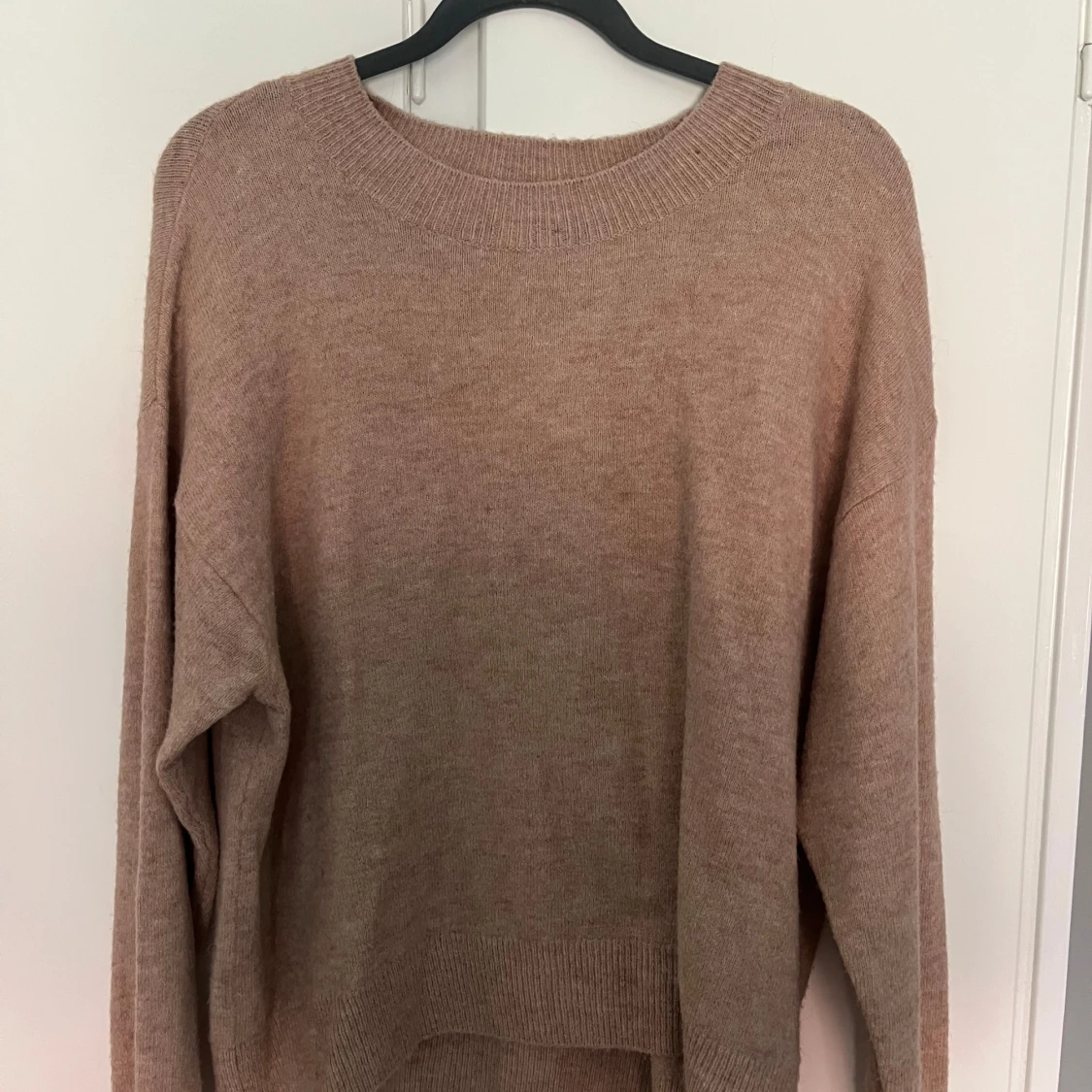 Mysig beige stickad tröja från H&M i storlek L. Tröjan har rund halsringning, långa ärmar och en avslappnad passform. Perfekt för lager-på-lager och chill dagar. Enkel och stilren design som funkar till det mesta.