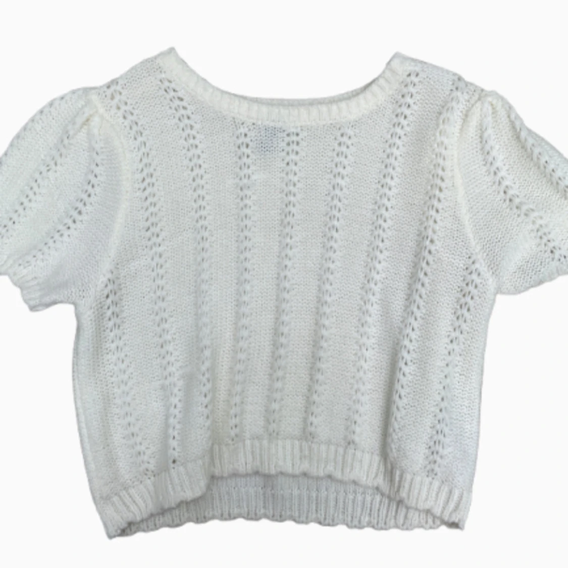 Super söt virkad , kortärmad tröja perfekt till alla årstider. Passar till allt och jätte skön. Är i storlek L men passar mig som har Xs/S. Hör av dig vid några frågor💓