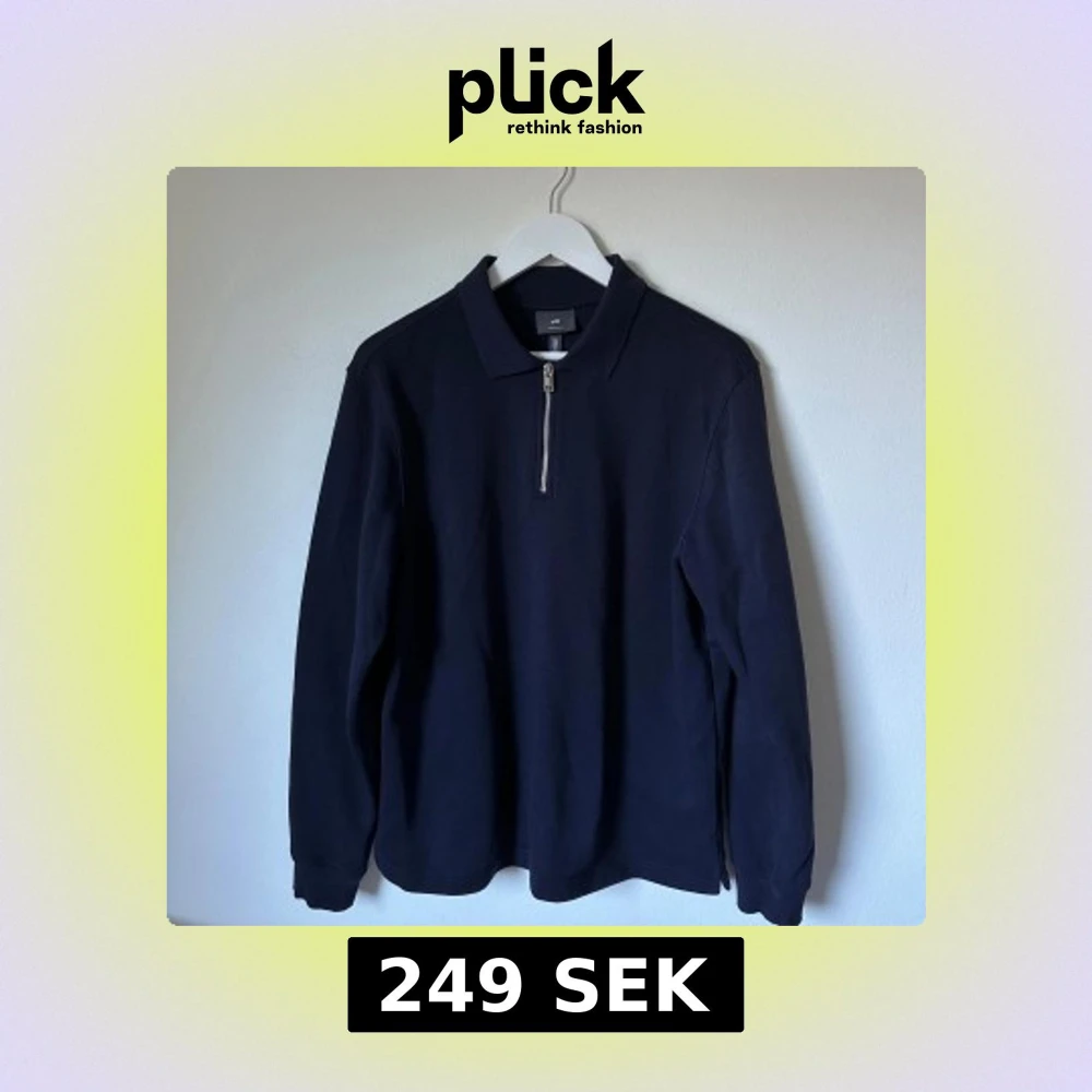 Snygg mörkblå pikétröja från H&M med klassisk krage och halv dragkedja framtill. Tröjan är långärmad och tillverkad i en mjuk blandning av bomull och polyester. Perfekt för en clean och stilren look. 3S2