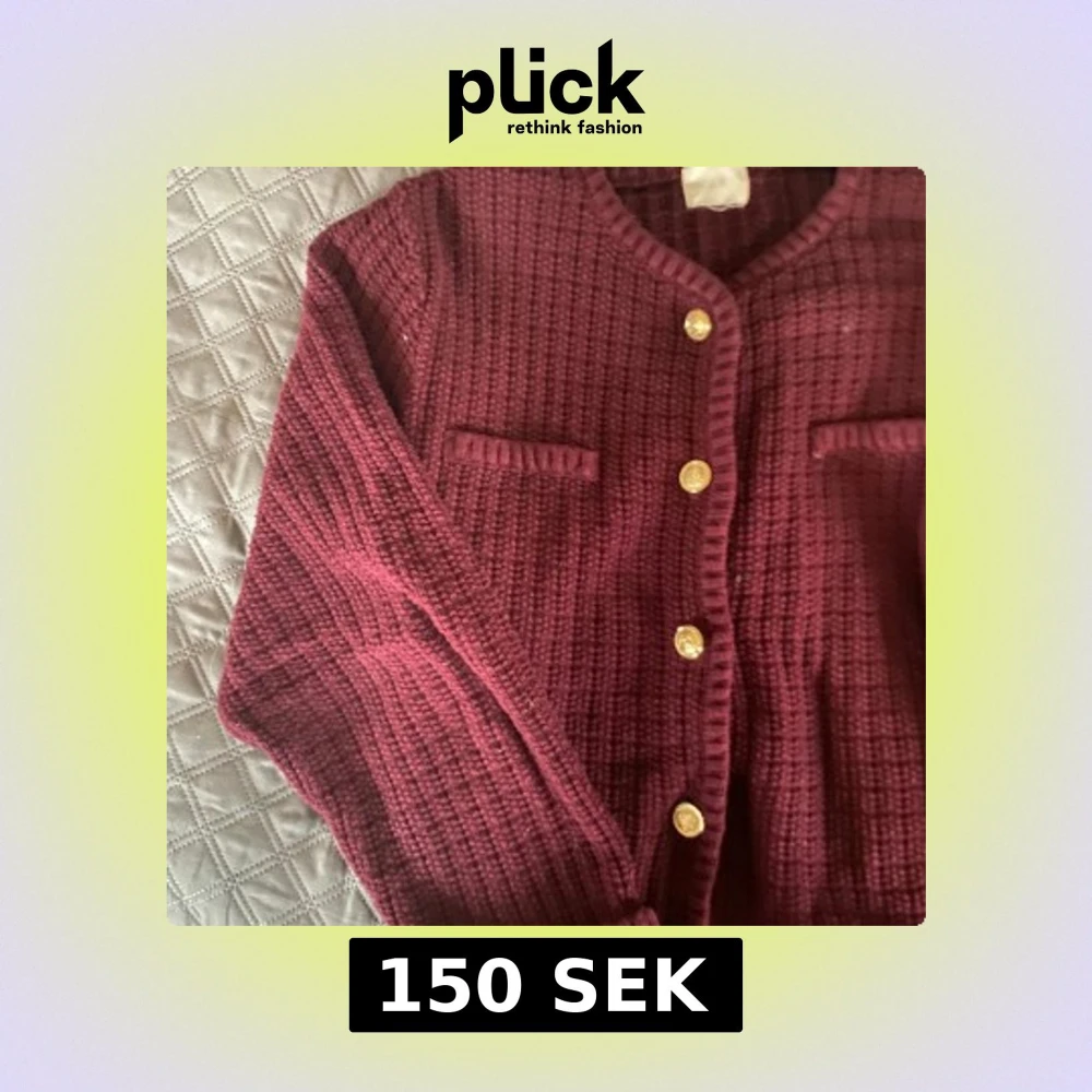 Vinröd stickad kofta med snygga guldknappar framtill och två dekorativa fickor på bröstet. Koftan har en grovstickad struktur och lång ärm, perfekt för lager-på-lager och en chill men ändå uppklädd vibe.Stär ej för postens slarv Köpt är köpt, gär ej att returneras. Pris går att diskuteras