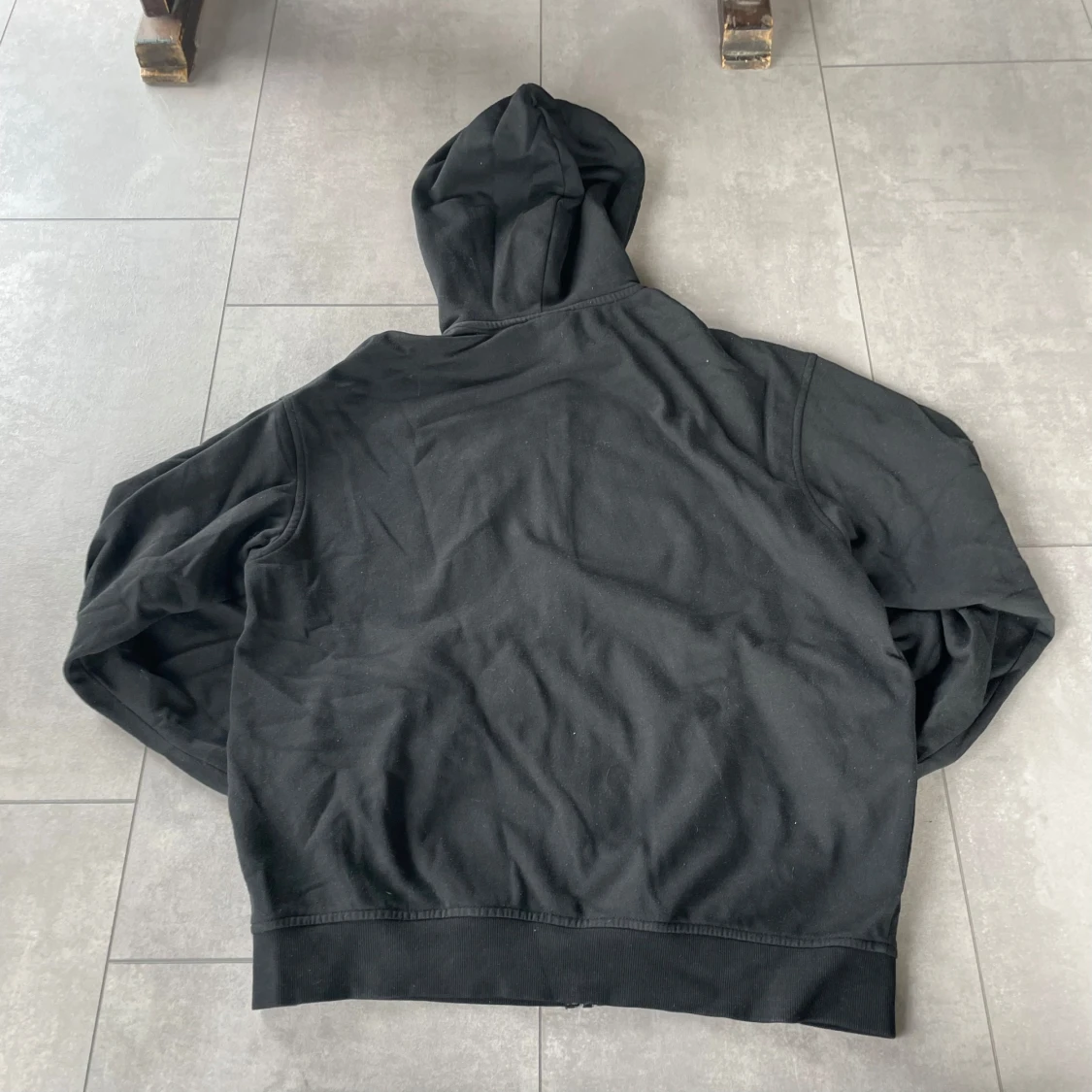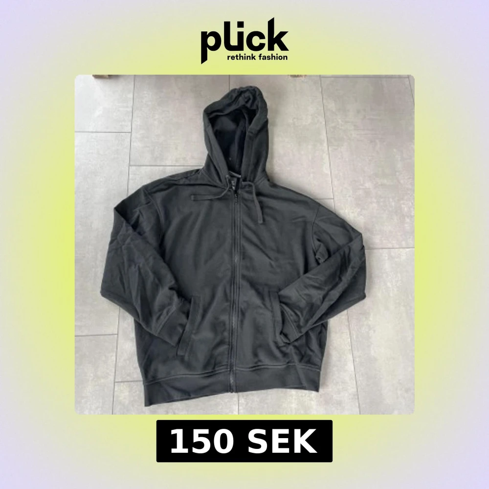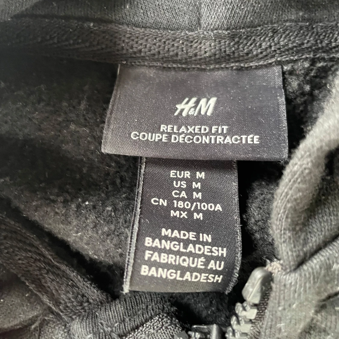 Svart hoodie från H&M i relaxed fit med dragkedja framtill och två fickor. Tröjan har huva med snörning och är tillverkad i mjuk bomullsmix. Perfekt för chill dagar eller när du vill ha en enkel och stilren look.