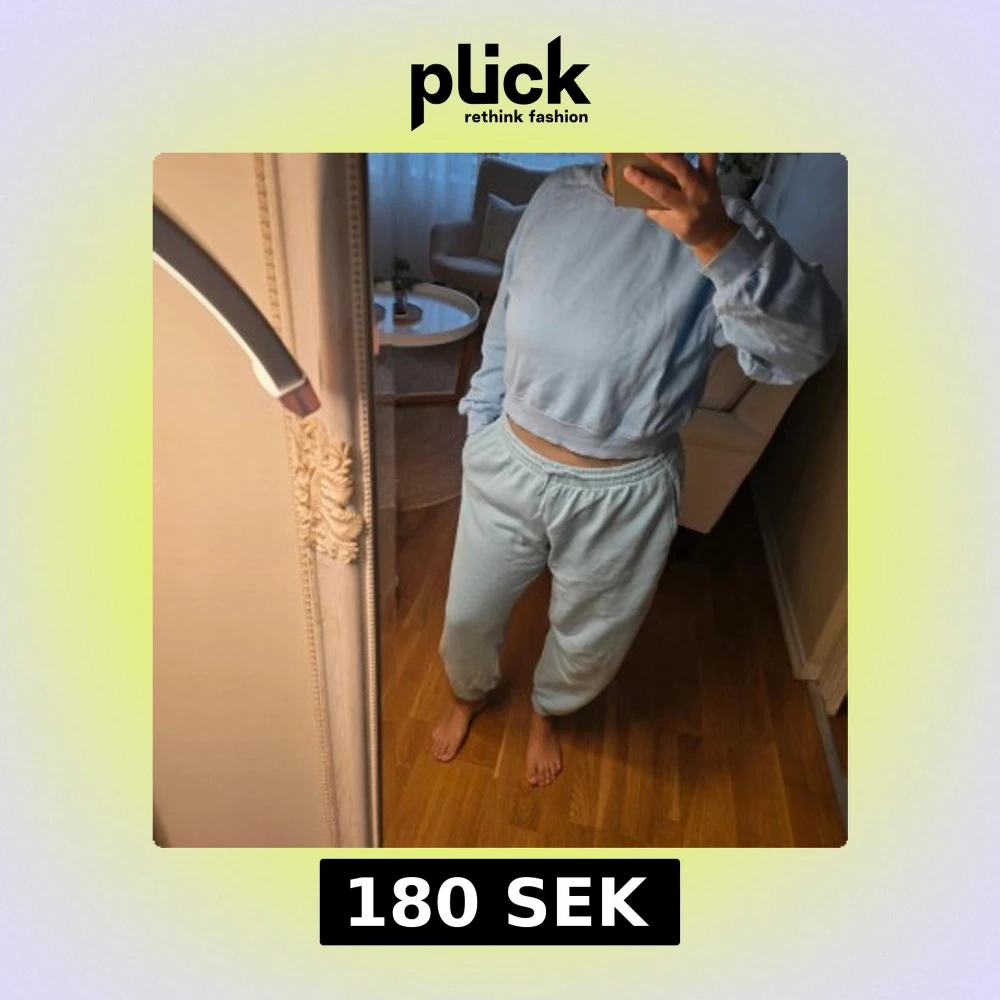 Säljer en ljusblå tröja med lång ärm och avslappnad passform. Perfekt för en mysig dag hemma. Tröjan har en ribbad kant vid ärmslut och nederkant.