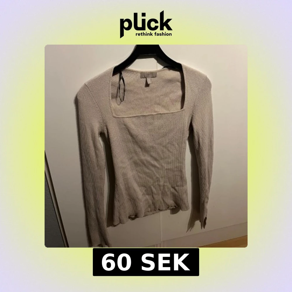 Säljer en stilren beige ribbad tröja från H&M. Tröjan har en fyrkantig halsringning och långa ärmar, perfekt för en avslappnad look. Passar bra till både jeans och kjol. Den sitter även fint på kroppen då den framhäver kurvorna snyggt!