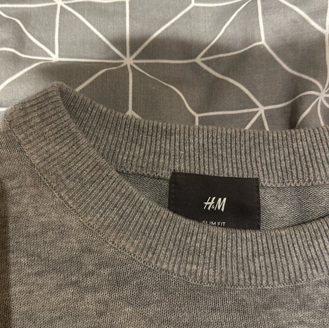 Säljer en stilren grå tröja från H&M i slim fit. Perfekt för både vardag och lite finare tillfällen. Tröjan är långärmad.