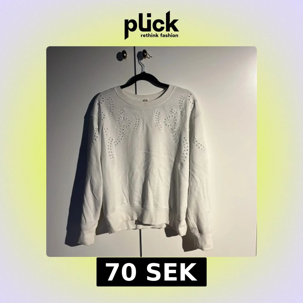 Vit sweatshirt i bomull med broderade mönster framtill och på ärmarna. Tröjan har rund halsringning, ribbade muddar och en relaxed passform. Storlek M!💕