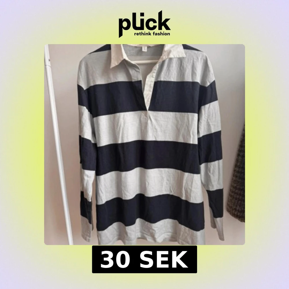En randig långärmad pikétröja (dam) i storlek M, från HM. Ganska oversized. Använd 1-2 gånger, tvättad en gång. Blå/grå.