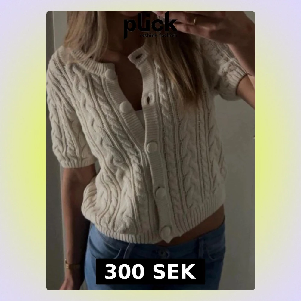 Kortärmad kofta i beige med stora matchande knappar framtill. Koftan har rund halsringning och ribbade kanter. Perfekt att styla med jeans eller kjol för en trendig look.