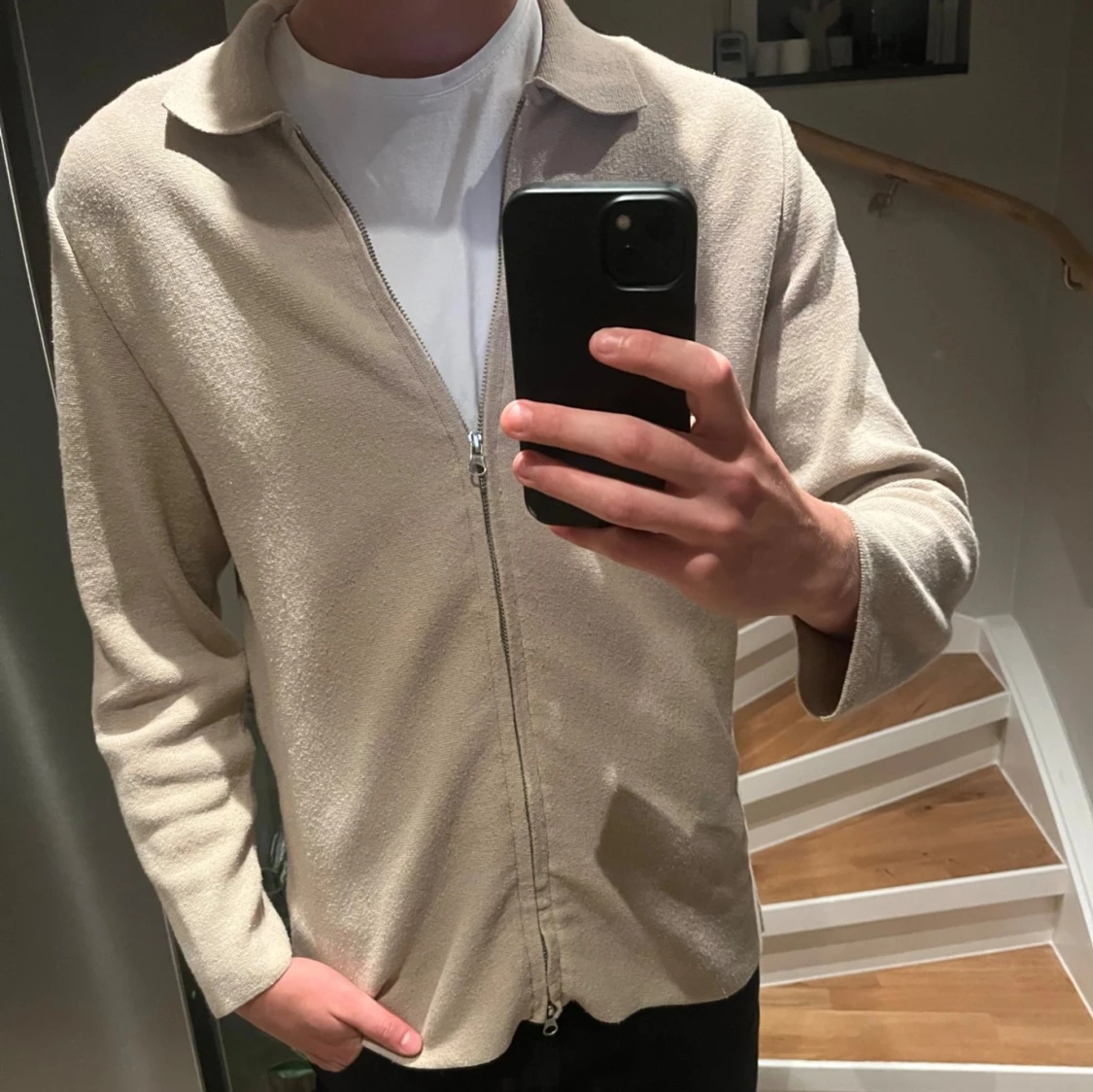 Schysst, simpel beige zip-up från H&M som är sällsynt. Knappt använd och i mycket bra skick. Nypris: Ca 500kr. Mitt pris: 200kr