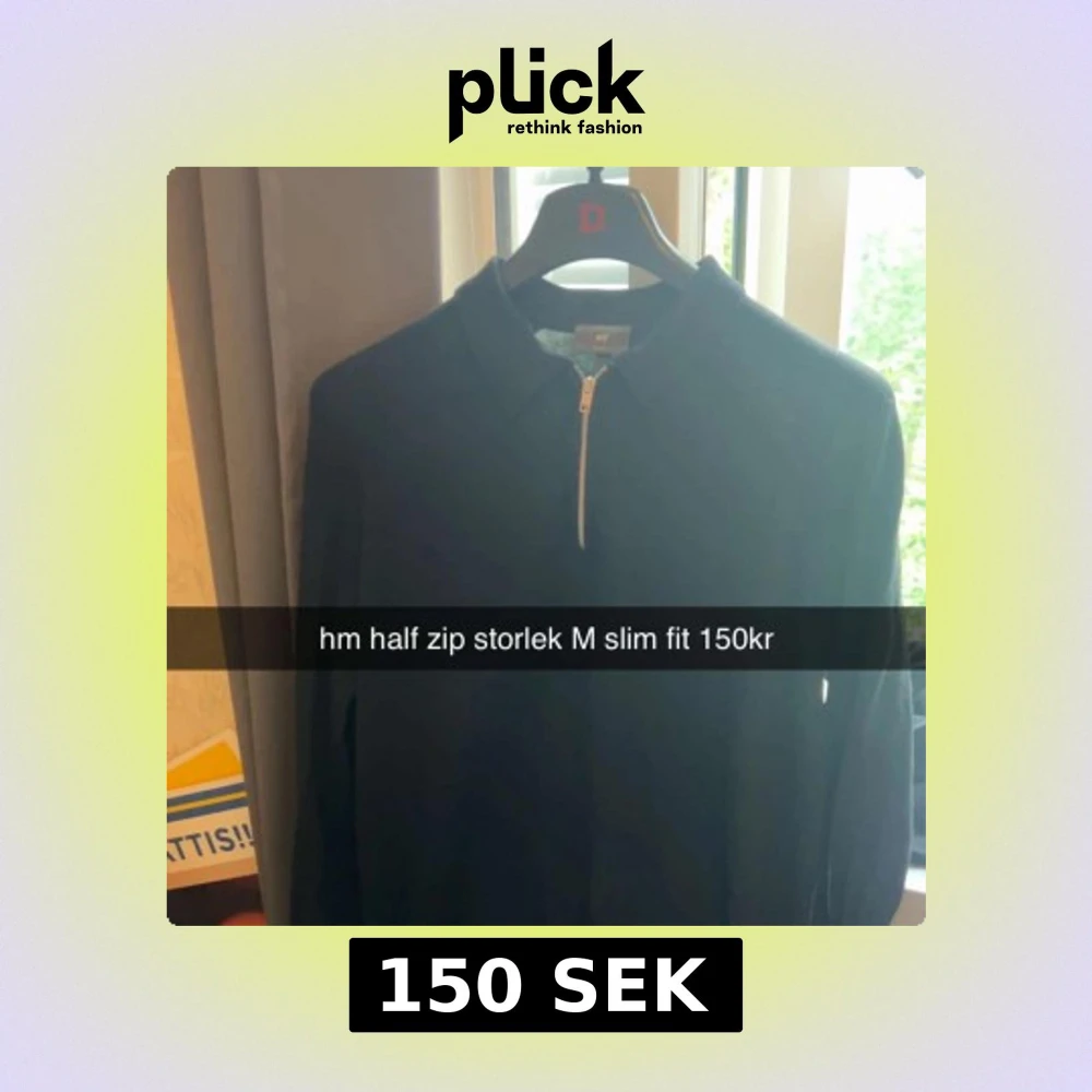 Säljer en svart långärmad tröja från H&M med half zip-dragkedja och krage. Slim fit-modell som sitter snyggt och stilrent. Perfekt för dig som gillar en enkel men modern look.