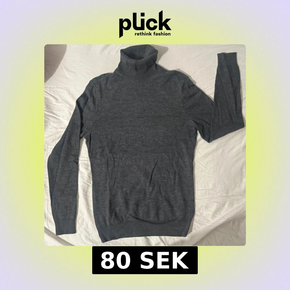 Snygg och stilren grå polotröja från H&M i mjuk merinoull. Perfekt för kyliga dagar med sin höga krage och långa ärmar. En klassisk baströja som passar till det mesta.