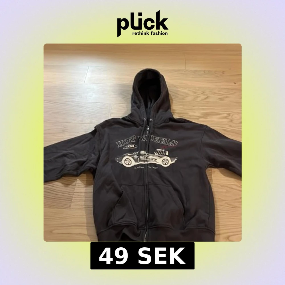 Cool svart hoodie med Hot Wheels-tryck från 1968. Den har en dragkedja framtill och en stor huva. Perfekt för bilentusiaster som vill ha en avslappnad stil.