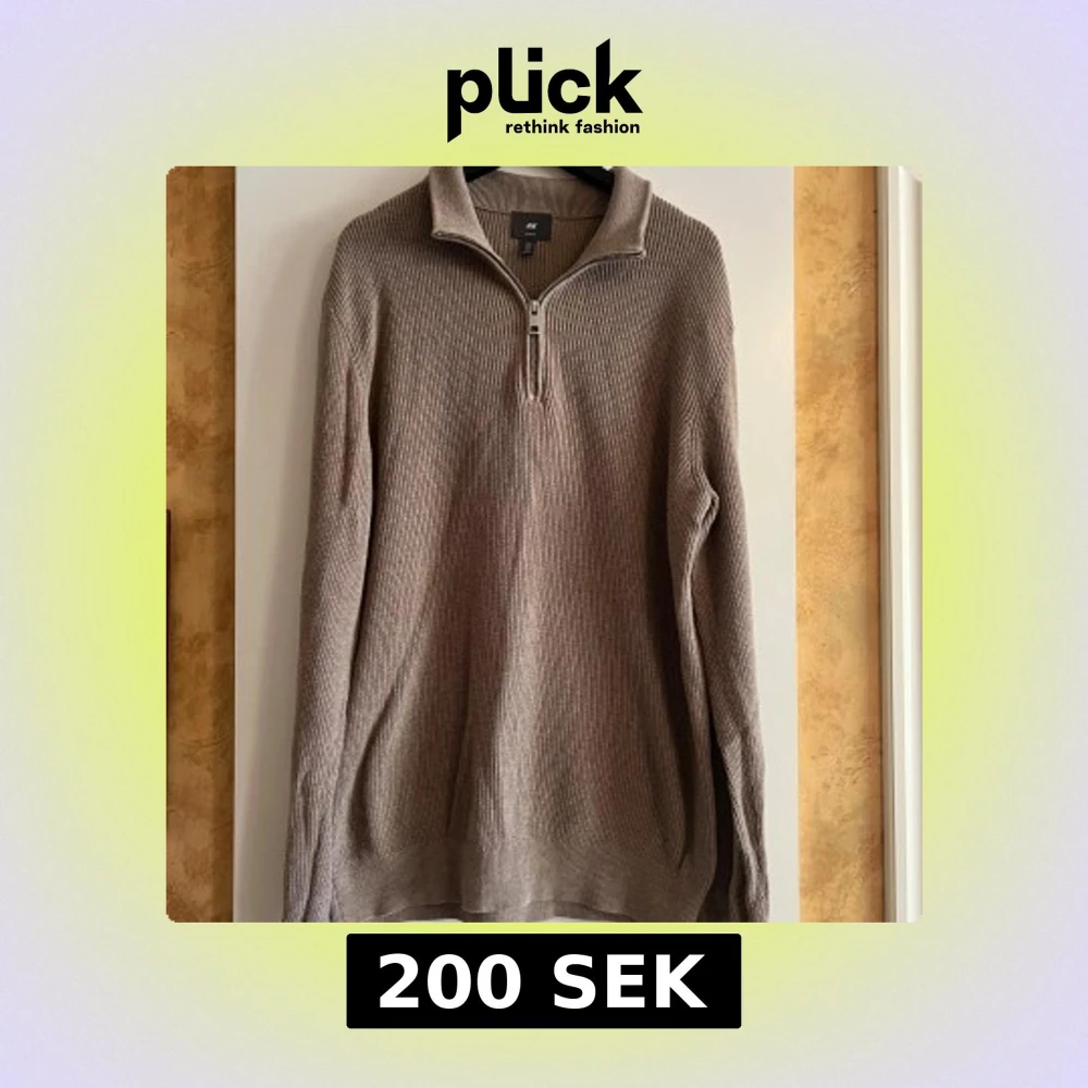 Säljer en riktigt snygg beige stickad tröja från H&M i slim fit med half zip och krage. Är i väldigt bra skick och är perfekt för hösten!