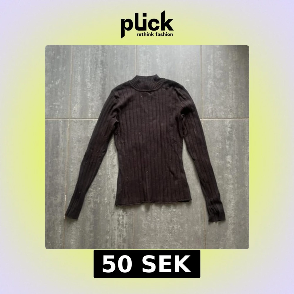 Svart ribbad polotröja från H&M i storlek M. Tröjan har lång ärm, smal passform och högre krage. Perfekt att styla med jeans eller kjol för en clean look.