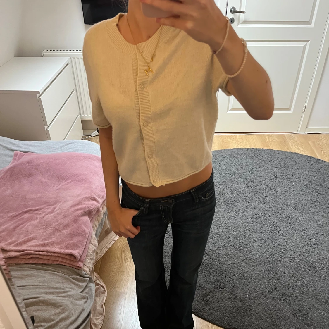 Stickad kortärmad topp från H&M, lite nopprig. Storlek M men passar som S/XS