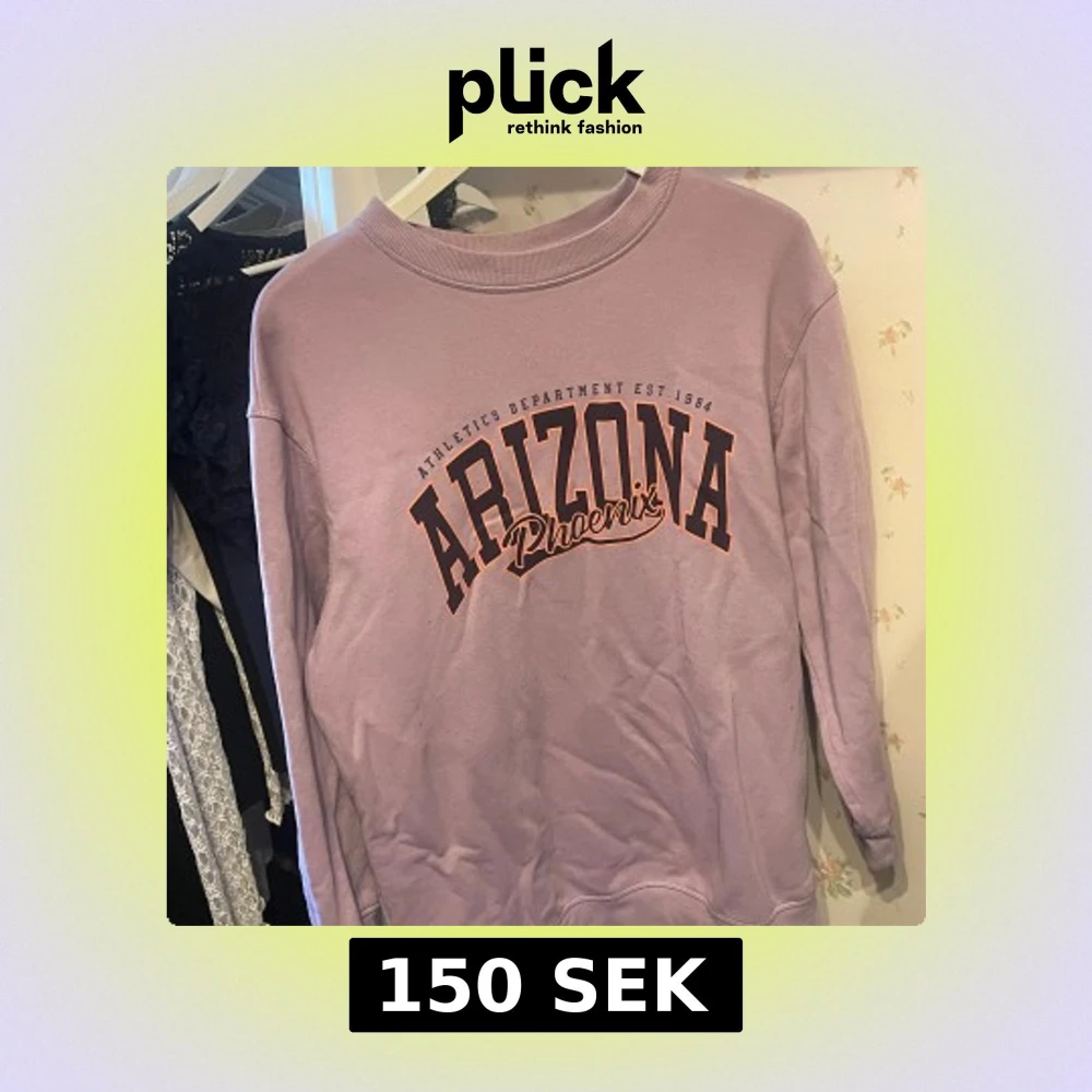 Säljer en ljuslila sweatshirt från H&M i storlek M med tryck 'Arizona Phoenix' på bröstet. Tröjan har rund hals, långa ärmar och en relaxed fit. Perfekt för dig som gillar oversize tröjor och vill ha något bekvämt och snyggt.