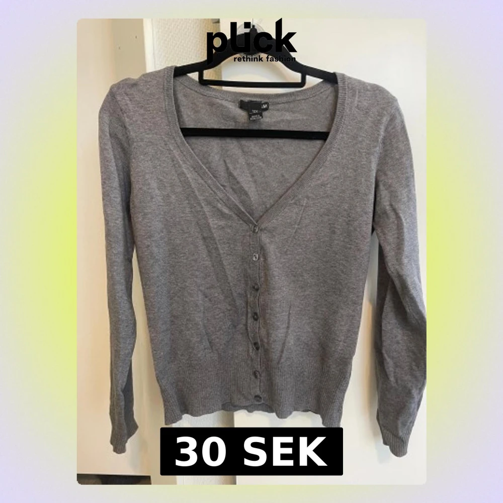 Snygg grå kofta från H&M i mjuk bomullsmix. Den har v-ringad hals, långa ärmar och knappar. .