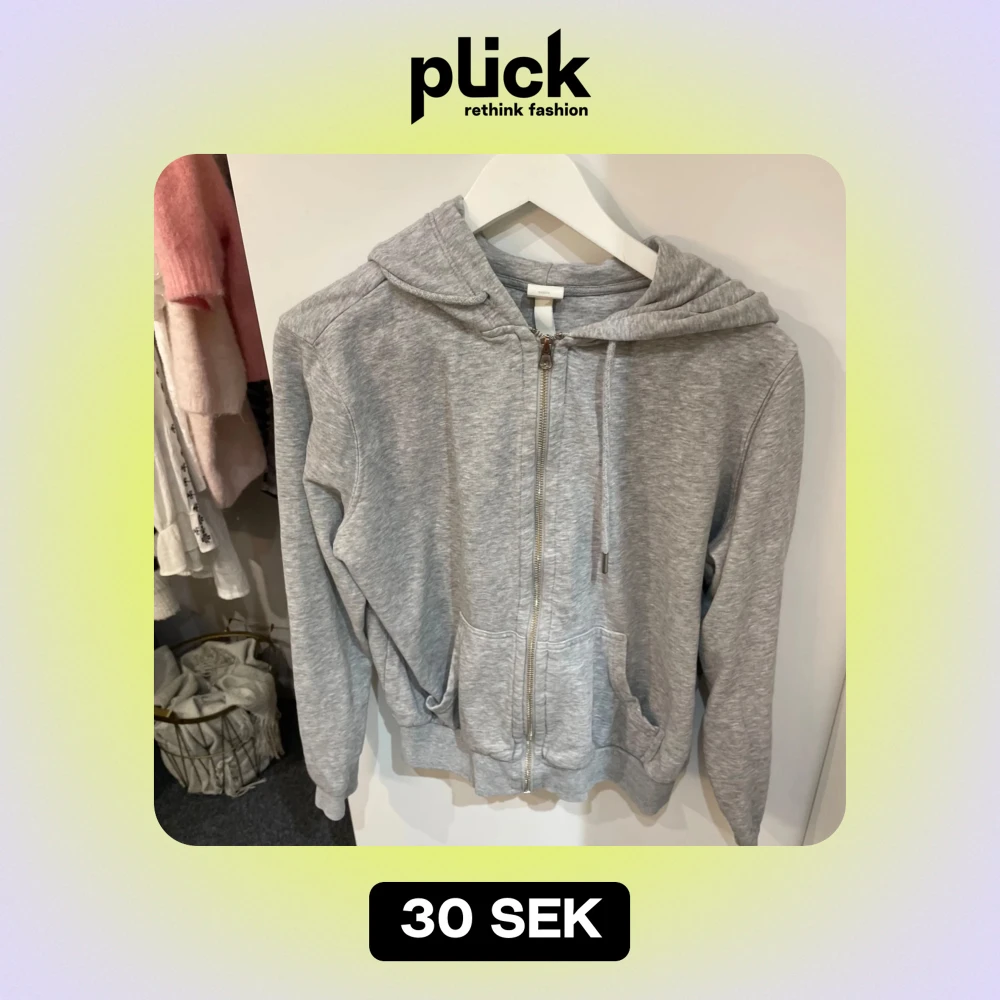 Säljer en grå hoodie från H&M i storlek M men passar även som s. Den har en dragkedja framtill och en mysig huva med snören. Perfekt för en avslappnad stil och passar till alla årstider. Två praktiska fickor framtill för att hålla händerna varma eller förvara småsaker.😍