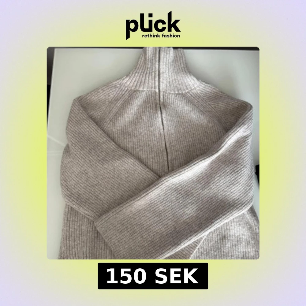 Säljer en beige ribbstickad tröja från H&M med hög krage och half zip-dragkedja. Materialet är mjukt och stickat. Använd 1 gång!