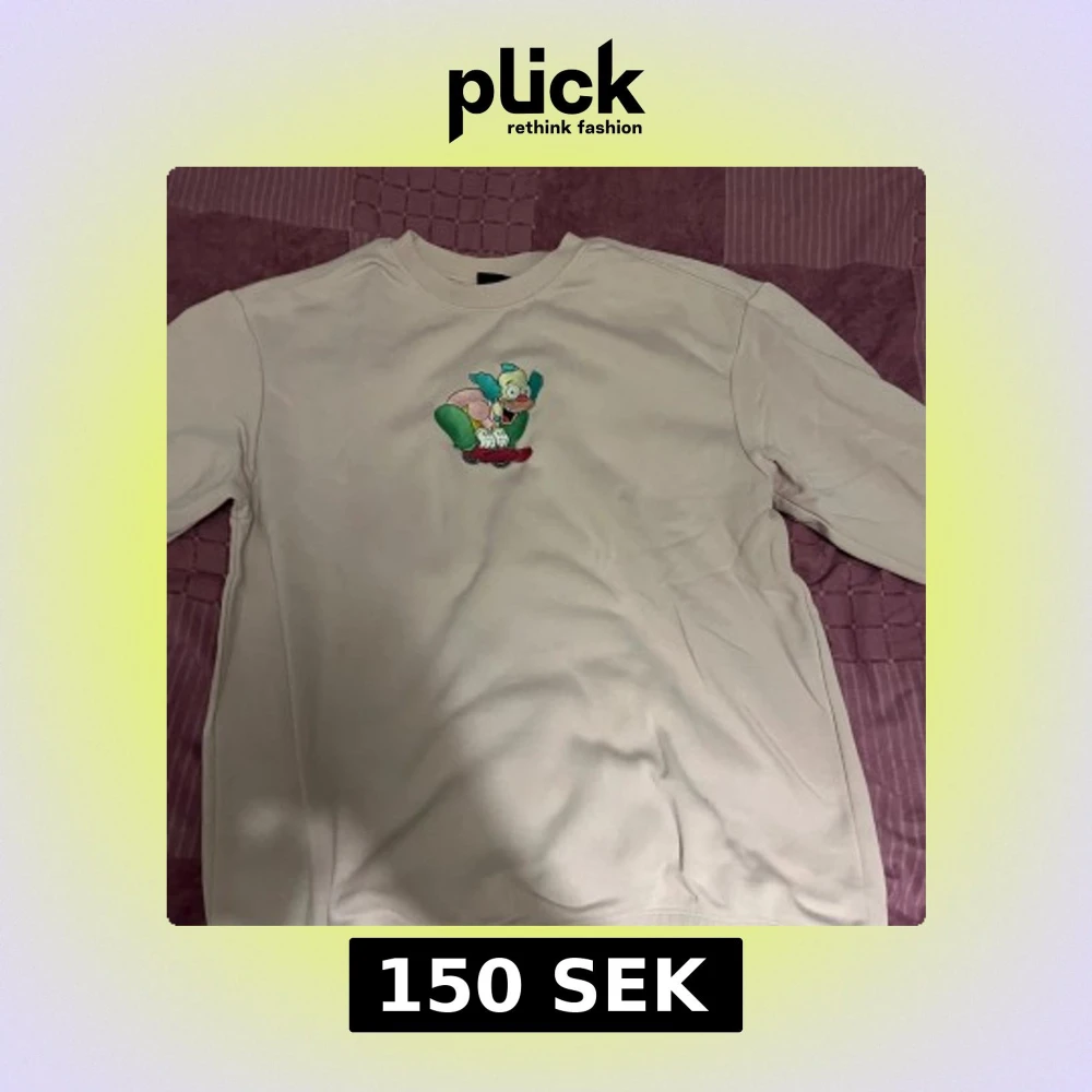 Säljer en ljus rosa sweatshirt med en färgglad tecknad figur på framsidan. Tröjan har långa ärmar och en rund halsringning. Perfekt för en avslappnad stil. Använd max 5 gånger.