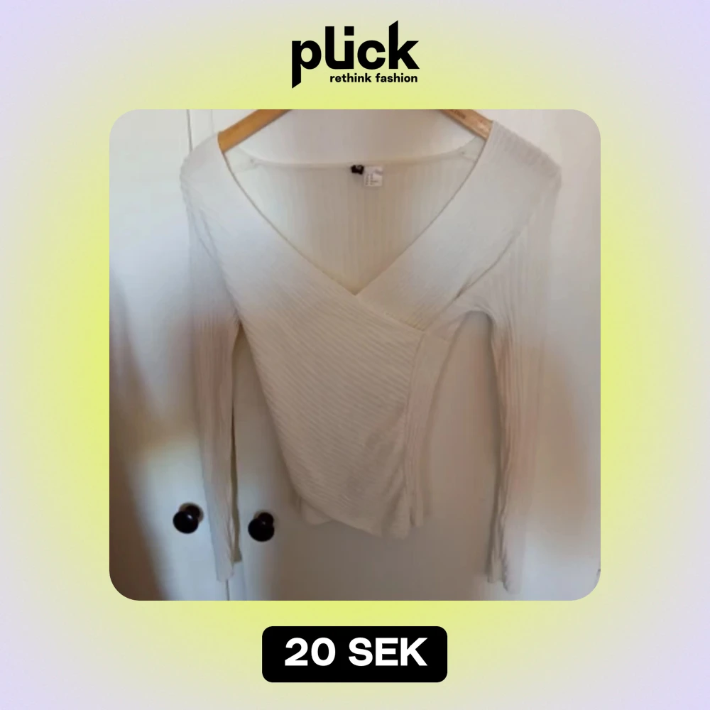 Säljer en superfin vit ribbad tröja från H&M. Den har en snygg omlott-design med v-ringning och långa ärmar. Perfekt för både vardag och fest! Tröjan är i storlek XS och sitter riktigt bra på kroppen.