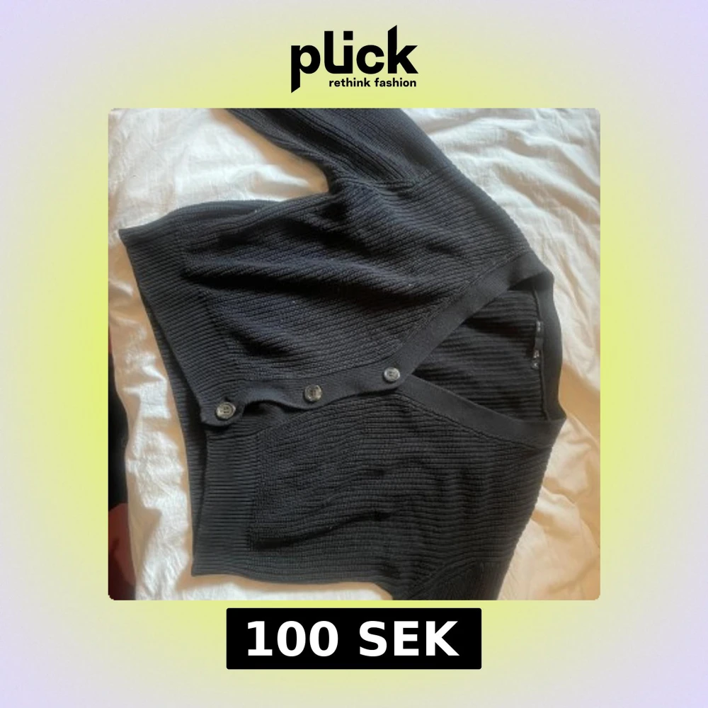Säljer en svart ribbad kofta från lager 157 i storlek S. Koftan har v-ringning, tre knappar framtill och är croppad i modellen. Perfekt att slänga över en topp eller klänning för en chill look.