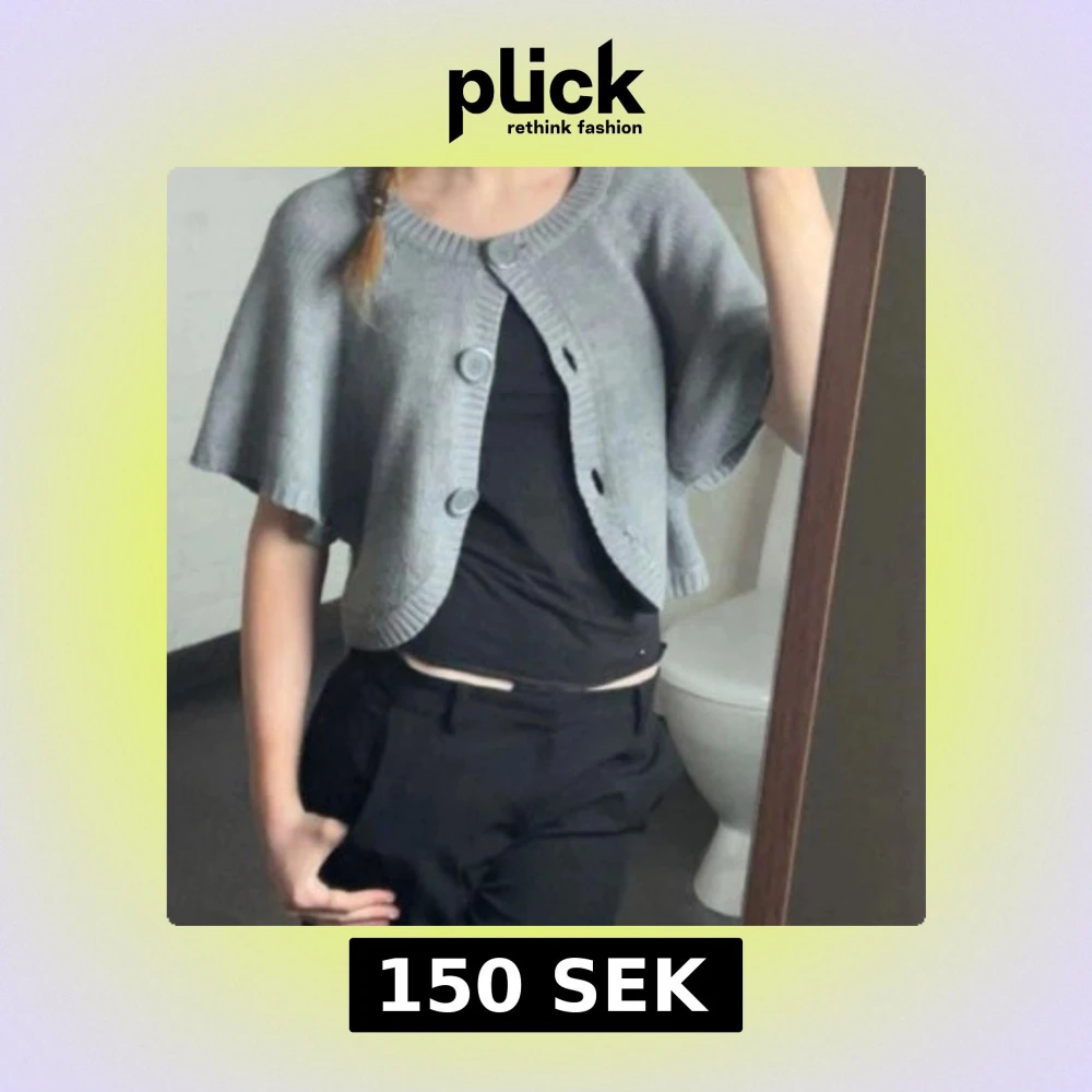 Säljer en stilren grå bolerotopp med knappar framtill.