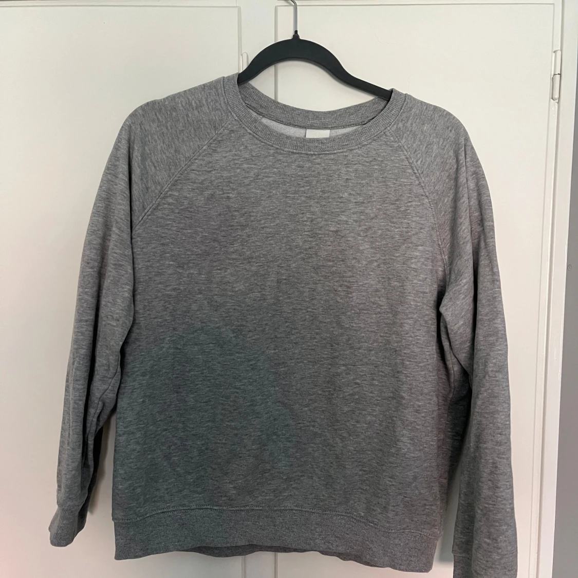 Enkel och stilren grå sweatshirt från H&M Basics i storlek S. Tröjan har rund halsringning, långa ärmar och är tillverkad i mjuk bomullsblandning. Perfekt för en chill och avslappnad look.