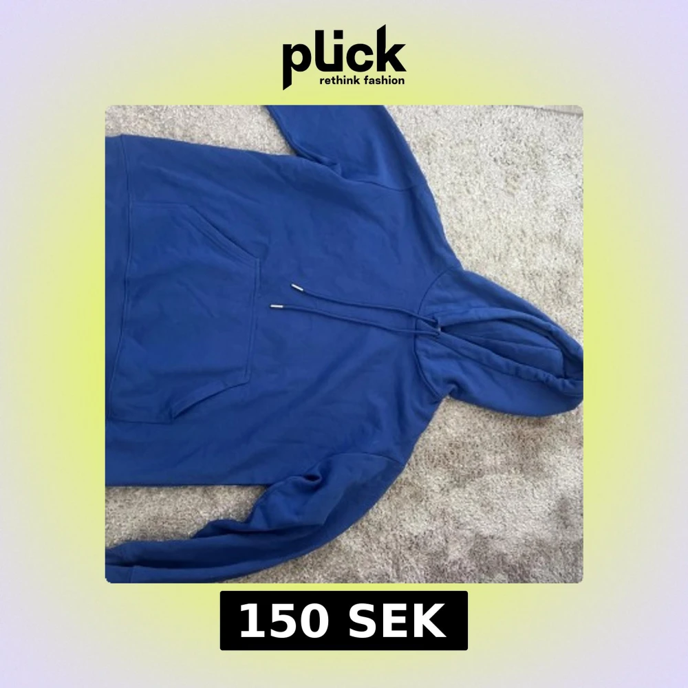 Säljer en enkel blå hoodie med huva och snörning. Tröjan har en stor magficka framtill och långa ärmar. Perfekt för dig som gillar en chill och avslappnad stil. Materialet känns mjukt och skönt mot huden.