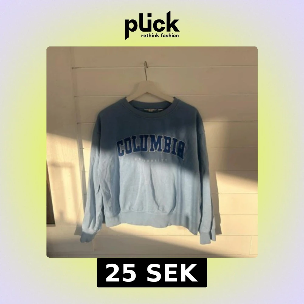 Säljer en ljusblå sweatshirt från H&M med Columbia University-tryck i mörkblått och vitt på bröstet. Tröjan har rund hals, långa ärmar och ribbade muddar. Perfekt för dig som gillar college-vibe och bekväma plagg.