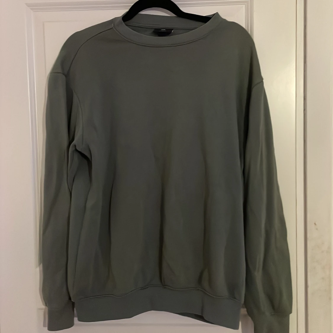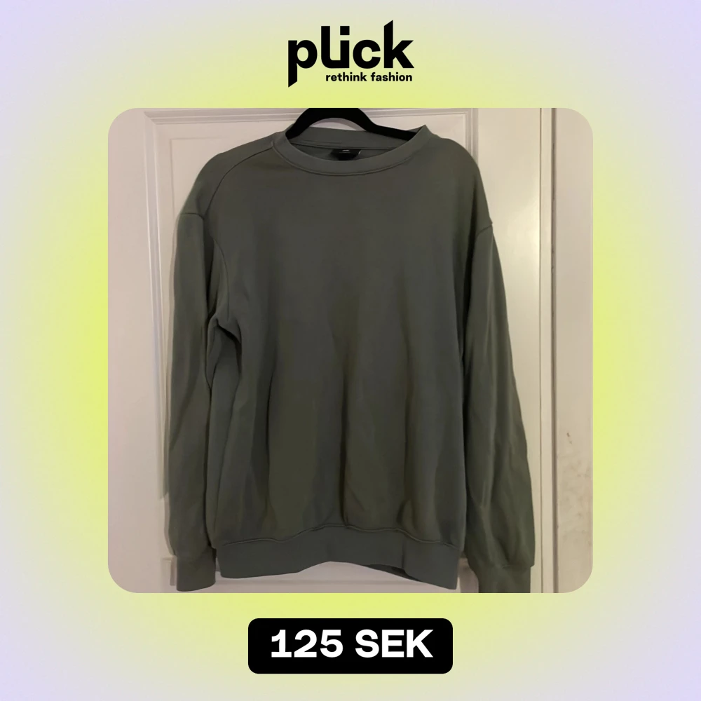 Säljer en stilren grön sweatshirt med rund hals och långa ärmar. Perfekt för en avslappnad look. Passar bra till både jeans och joggers. Storlek S