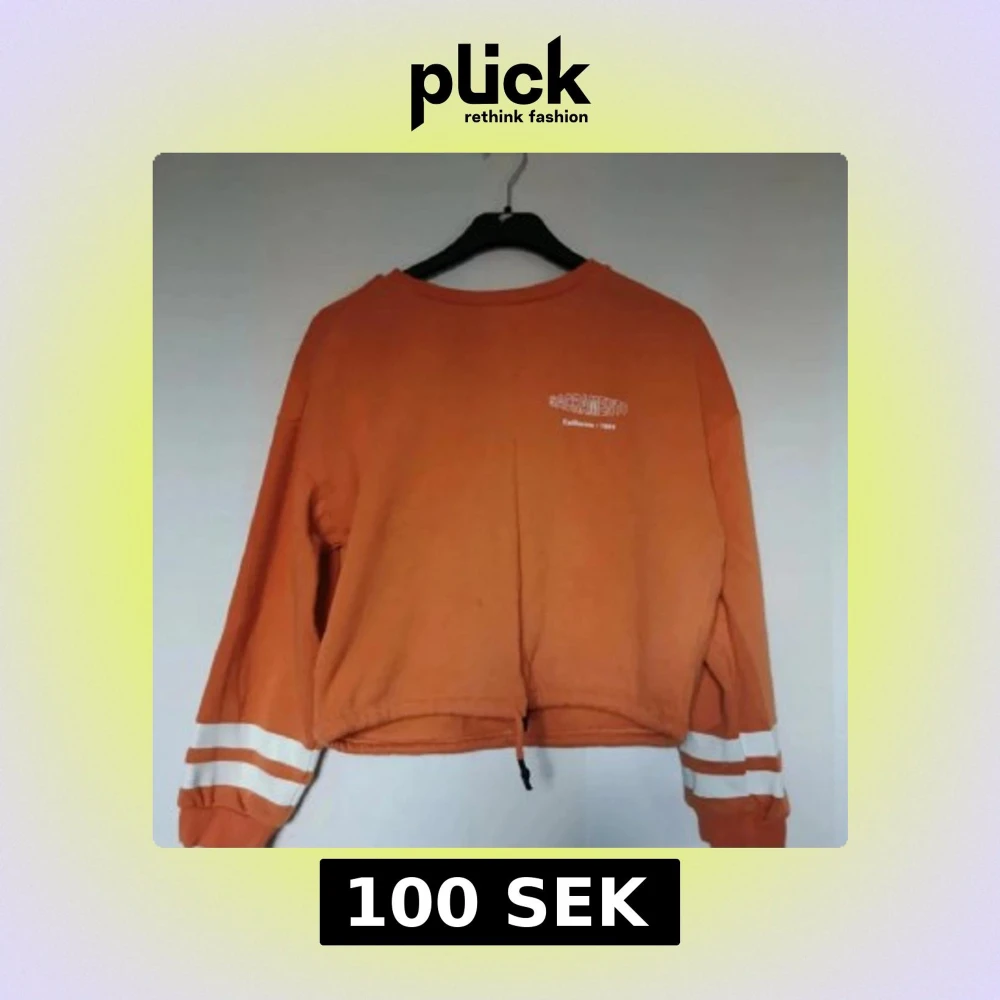 Orange croppad sweatshirt i jättefint skicka från HM i storlek S. Den har fleecetyg på insidan och resår med snören längst ner på tröjan om man vill dra åt den. Använd ett fåtal gånger, inga defekter.