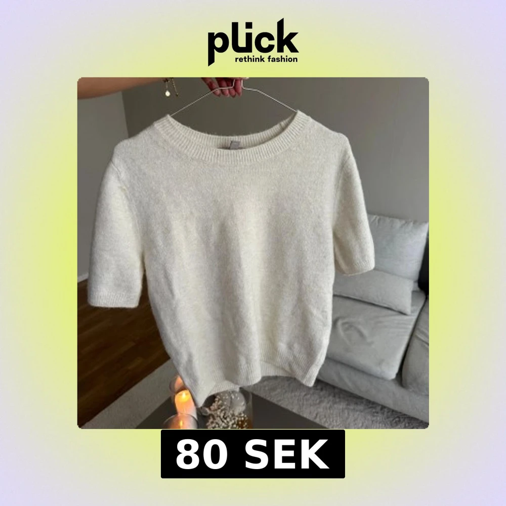 Supermjuk vit stickad tröja från H&M med korta ärmar och rund halsringning. Tröjan har en enkel och clean look med ribbade muddar vid hals, ärmslut och nederkant. 💛