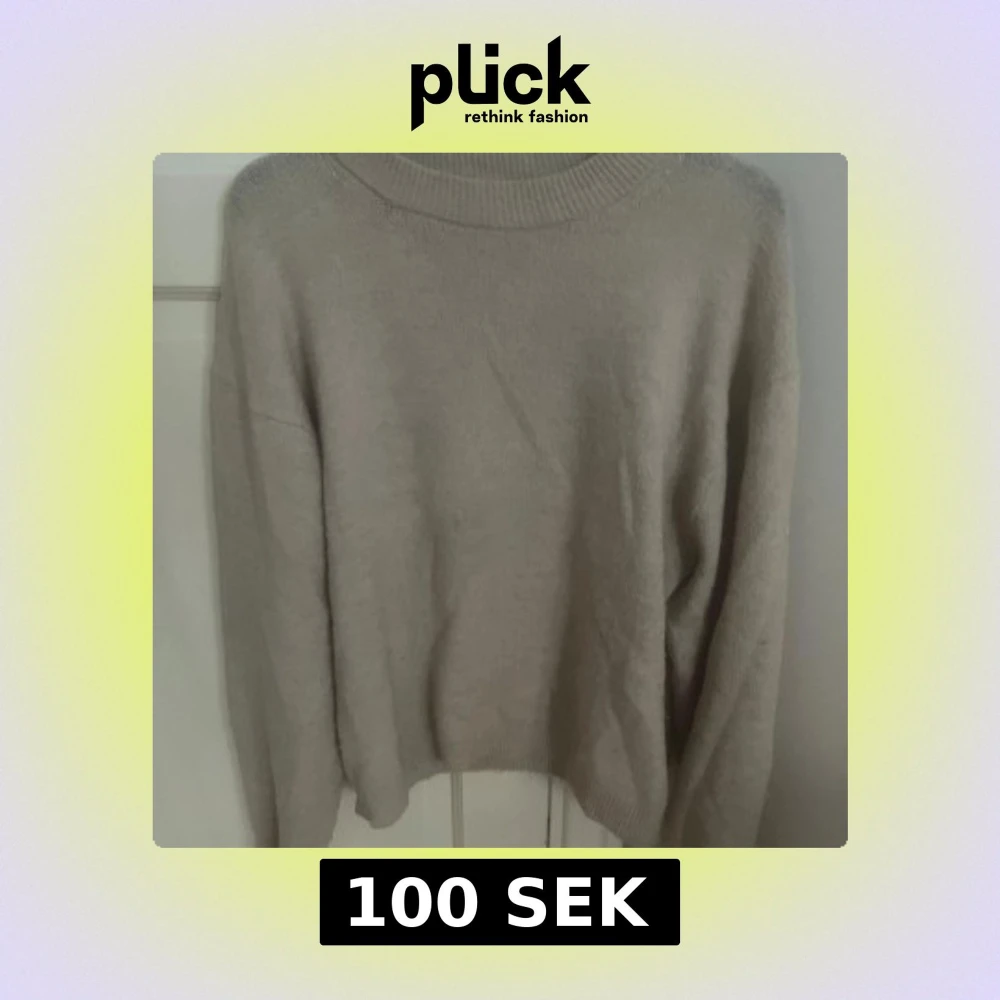 Enkel och stilren beige stickad tröja från H&M i storlek S. Tröjan har rund halsringning, långa ärmar och ribbade muddar vid hals, ärmslut och nederkant. Perfekt för lager-på-lager och chill vibes.