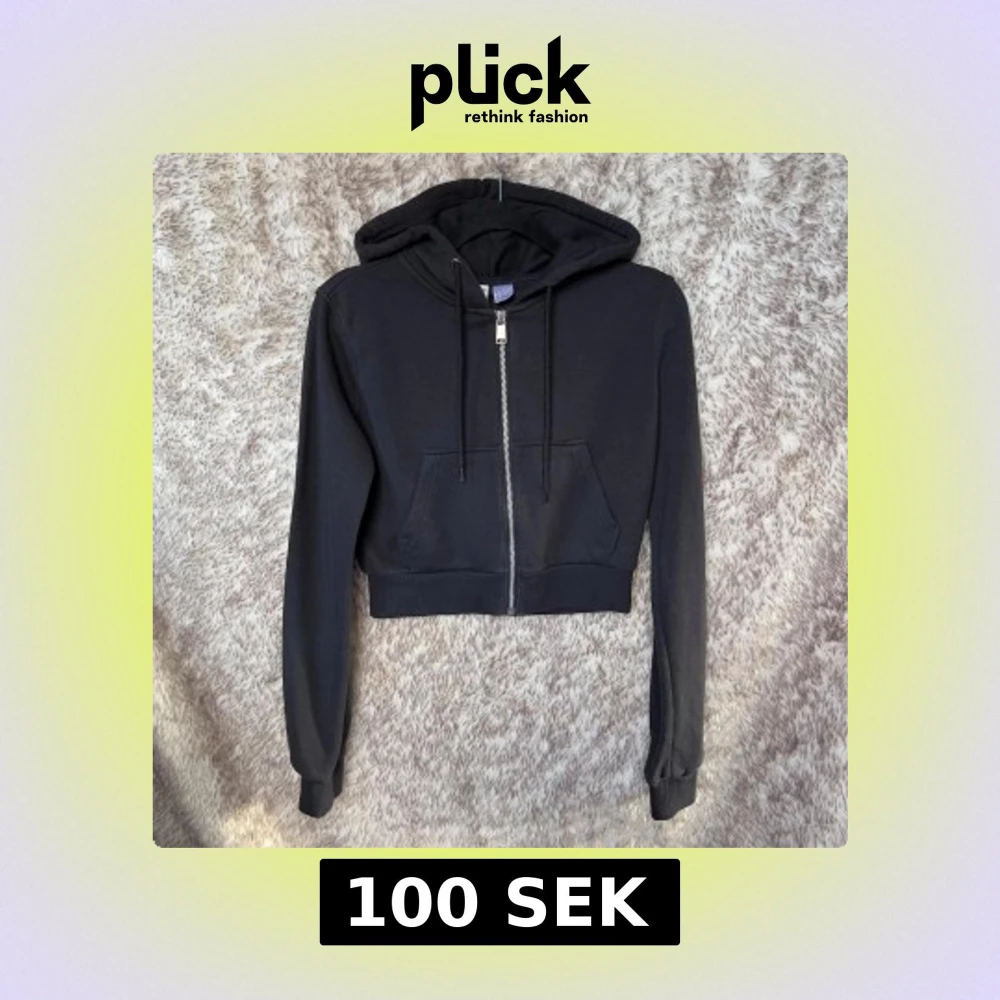 Croppad hoodie med dragkedja i silver. Fickor på sidorna och snörning.