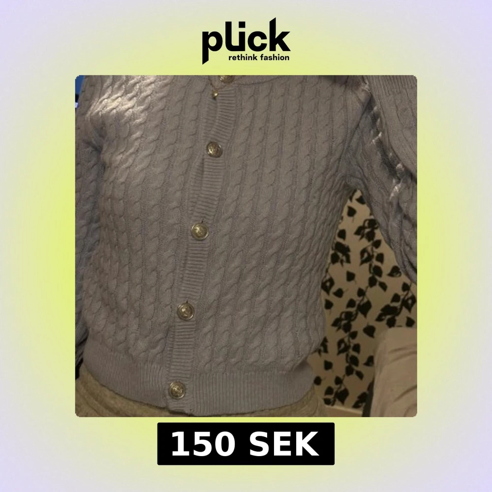 Supersöt ljuslila kabelstickad kofta från H&M med snygga silvriga knappar framtill. Koftan har rund halsringning, ribbade muddar och lång ärm. Perfekt att slänga över en topp för en chill och trendig look.