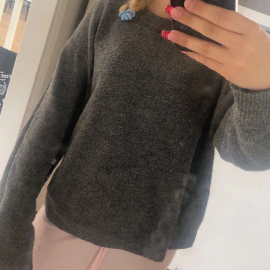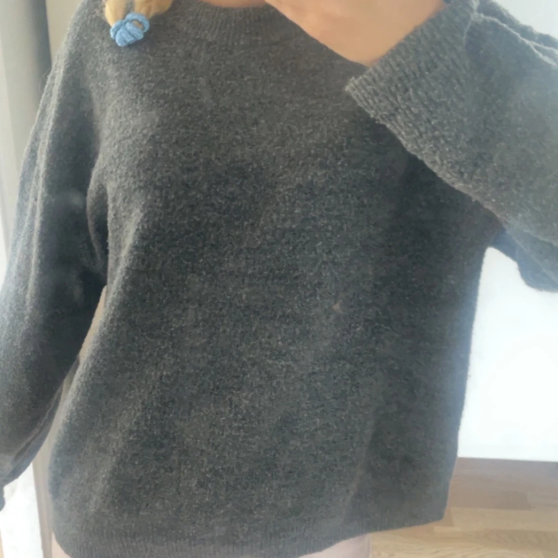 Mysig mörkgrå stickad tröja med rund halsringning och långa ärmar. Tröjan har en enkel och clean design med ribbade muddar vid ärmslut och nederkant. Perfekt för lager-på-lager under kyliga dagar.