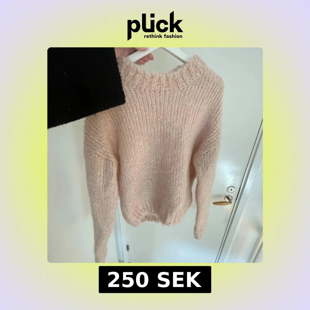Supermjuk och fluffig ljusrosa stickad tröja från H&M i mohairblandning. Tröjan har en hög, ribbad halsringning och långa ärmar. Använd ett fåtal gånger i storlek S💕