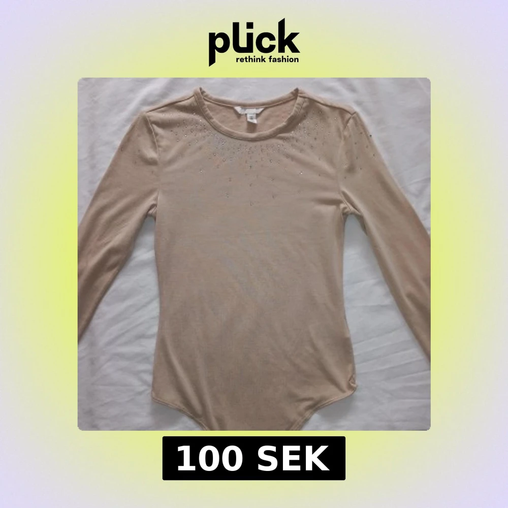 Säljer en elegant beige långärmad topp med strassdetaljer vid halsringningen. Perfekt för att lägga till lite glans till din outfit. Toppen har en rund hals och är tillverkad i ett mjukt material.
