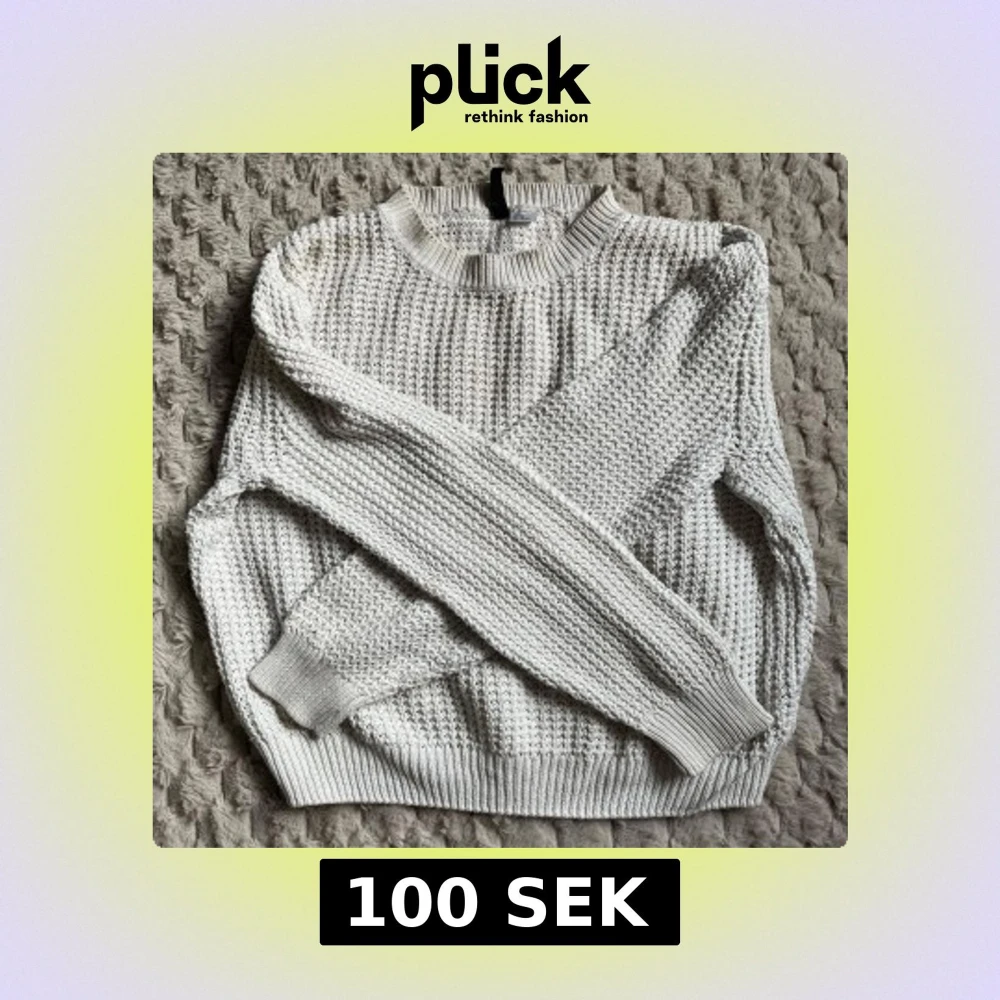 Säljer en stilren vit stickad tröja från H&M. Tröjan har en klassisk rund hals och långa ärmar med ribbade muddar. Enkel att matcha med olika outfits. Hör av dig vid intresse!